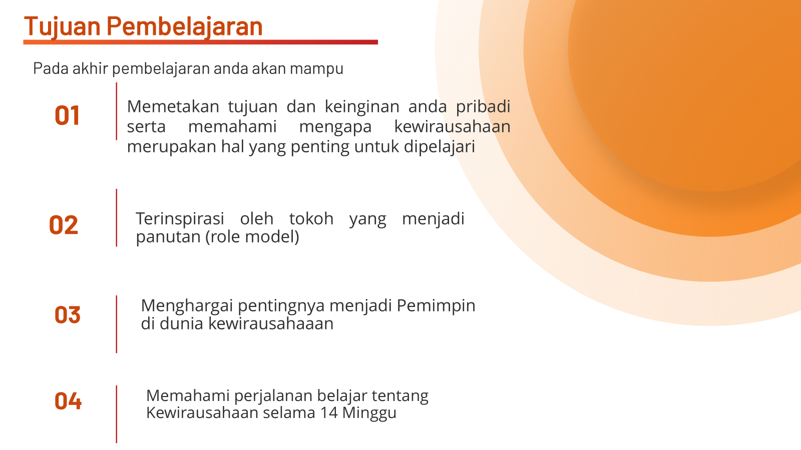 1. Mahasiswa mampu memahami konsep kewirausahaan dan menumbuhkkan keingingan untuk berwirausaha.