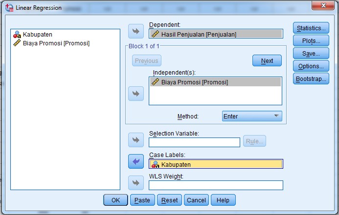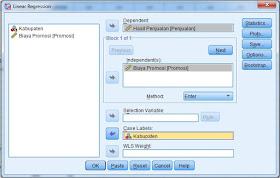 Pilih menu Analyze >> Regression >> Linear