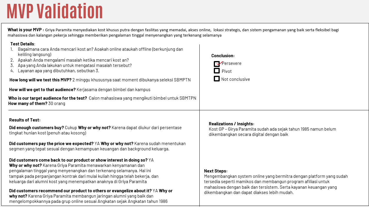 - Memvalidasi kesesuaian masalah pelanggan (customer problem fit)